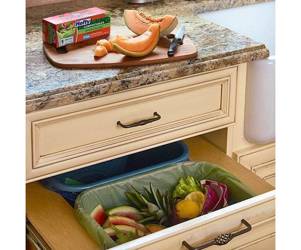 Perfect for the kitchen and more, these durable bags will help keep your kitchen clean. Hefty small kitchen scrap compost bags help you minimize your environmental impact as you prep your family meals. Choose these hefty small garbage trash bags for disposing of waste at your home or office. This package contains 25 hefty compostables, green, 2.6 gallon kitchen compost bags, each 0.6 mil thick. Add to list added to list.